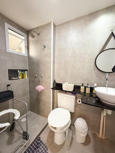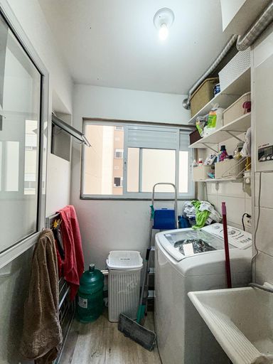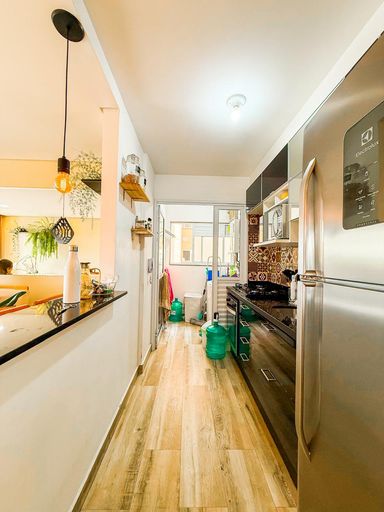 Sala, cozinha americana, banheiro, área de serviço e vaga para 1 carro.
