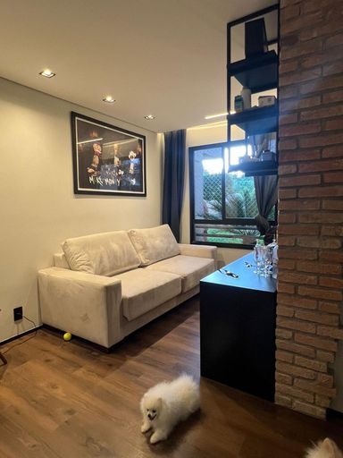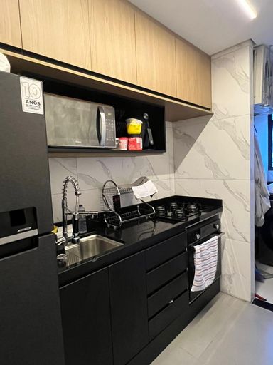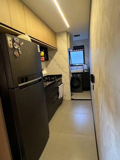 Apartamento totalmente MOBILIADO, com todos os móveis planejados, louças jacuzzi, piso de vinílico, geladeira, máquina de lavar, cama, sofá.