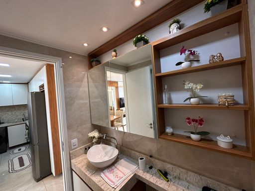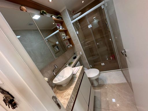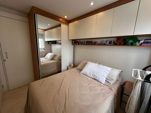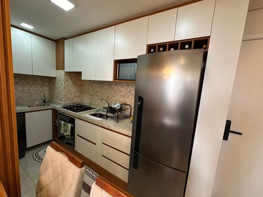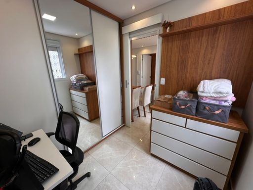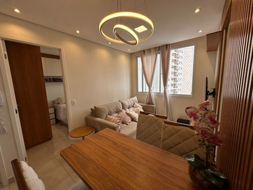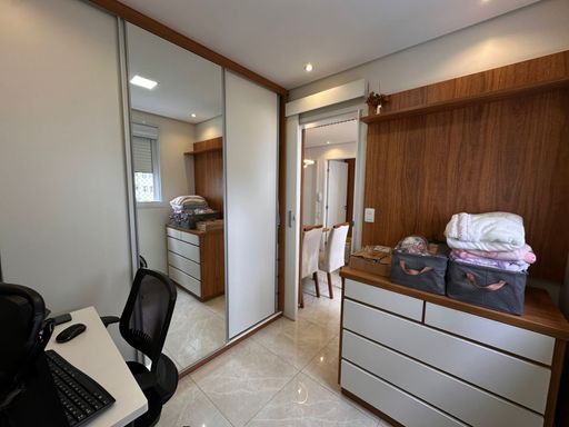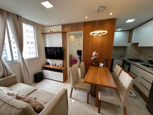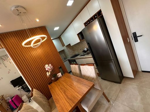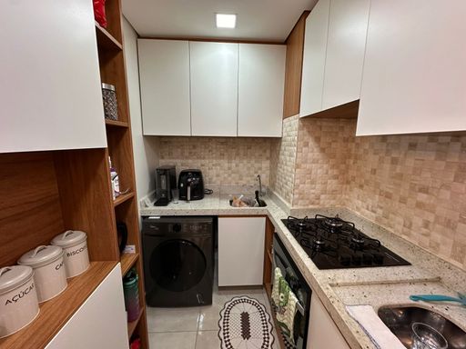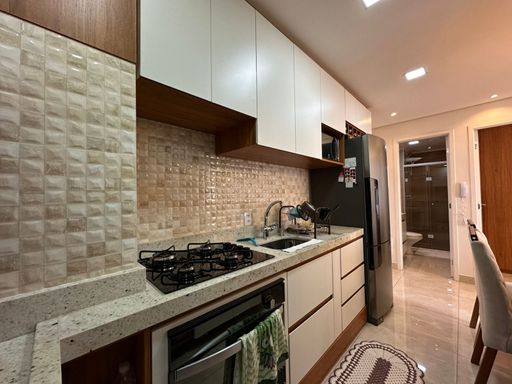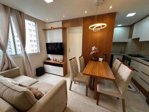 Vista interna para ocondomínio, porcelanato em todo apto, móveis planejados em todos os cômodos, condomínio bem completo, playground, piscina adulto e infantil, salão de jogos, brinquedoteca, lavanderia, mercado, academia, salão de festas, 2 churrasqueiras, quadra de grama sintética, gerador para áreas comuns.