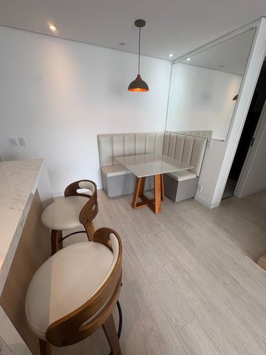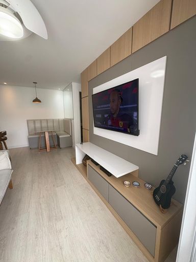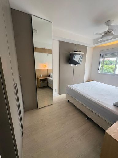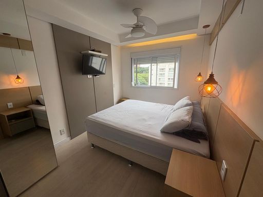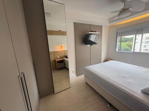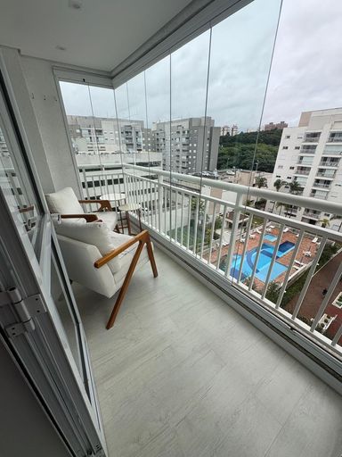 O apartamento é todo reformado e com excelente acabamento e bom gosto, repleto de armários planejados em todos os ambientes, piso laminado, vista linda para a piscina.