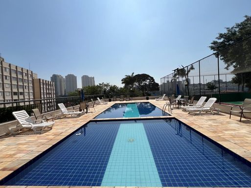Condomínio Geneve, apartamento amplo, com armários de madeira. Quarto e banheiro de serviço.