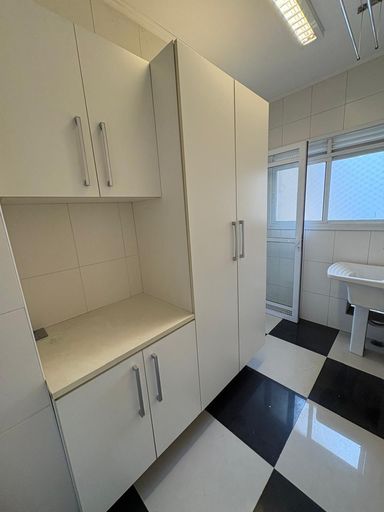 Cozinha espaçosa e lavanderia grande e ventilação.