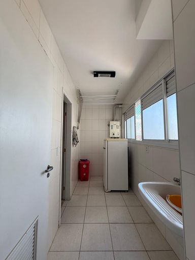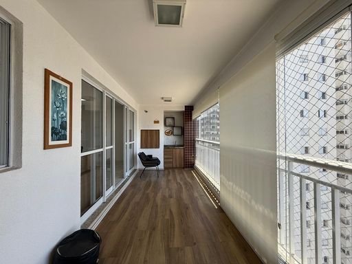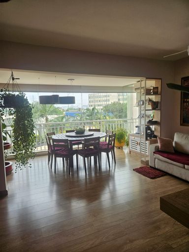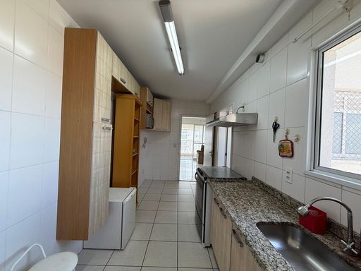 Apartamento com 124m², possui 3 dormitórios sendo 1 suíte, sala grande para 2 ambientes, varanda com churrasqueira, cozinha, área de serviço, lavabo, banheiro social e 2 vagas de garagem.
