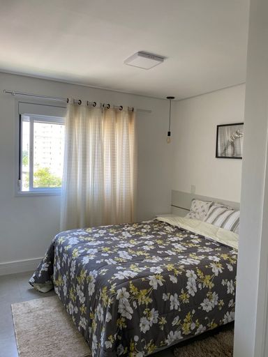 Apartamento reformado, varanda estendida e nivelada com a sala, ar-condicionado, a planta tem 3 dorms, mas está com 2 dorms.