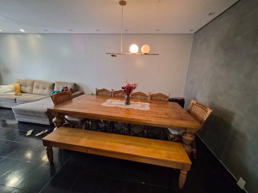 3 dormitórios sendo 2 suítes, sala de jantar, sala de visita, cozinha, lavanderia, área coberta com churrasqueira, vaga para 2 carros.
